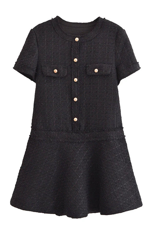 Brit & Boho™ I Lalaine Gold Button Short Sleeve Pocketed Mini Dress
